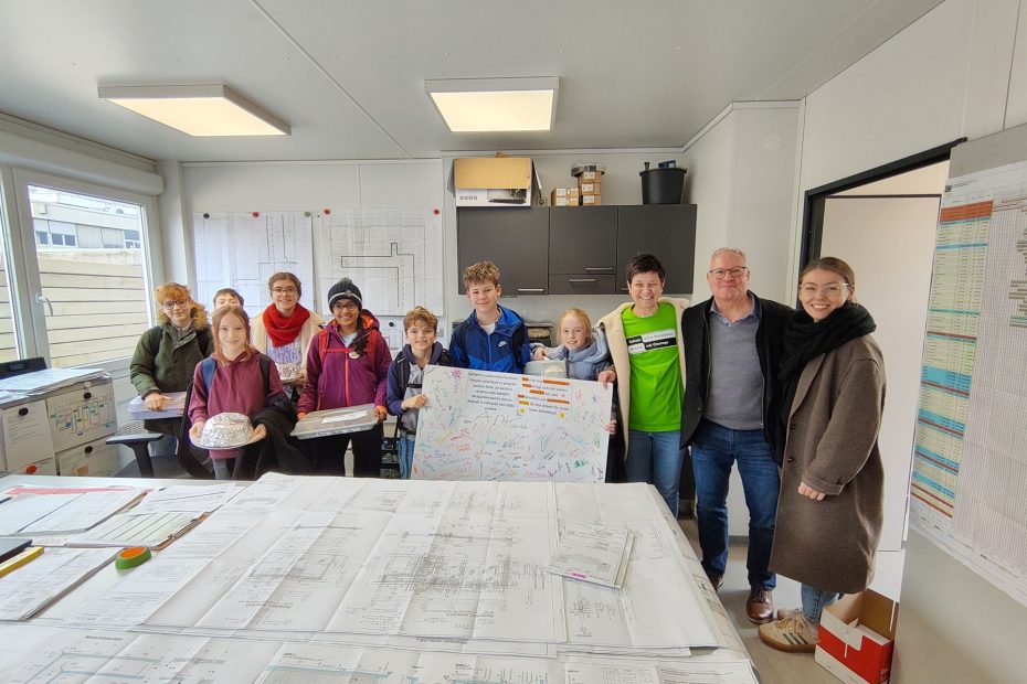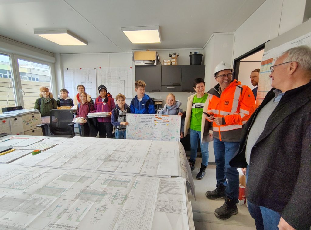 Am Mittwoch, 11.2.26, haben die SMV, die Courage-AG und die Schulleitung den Bauarbeitern unserer Schulhausbaustelle Kuchen und zwei Dankeschön! – Plakate überreicht.