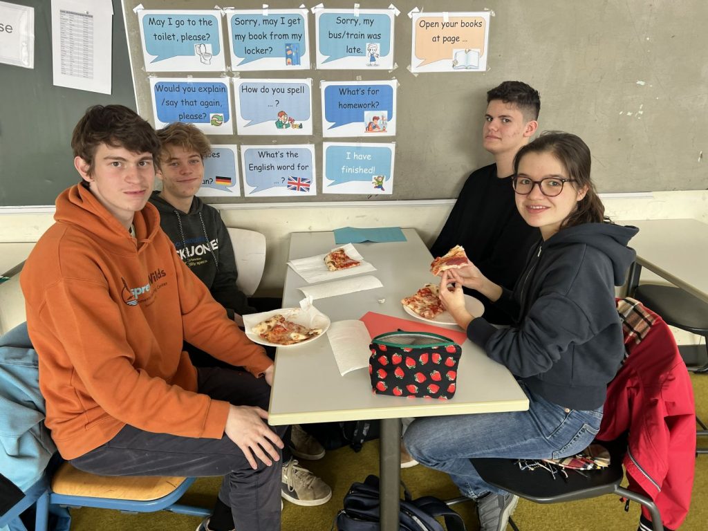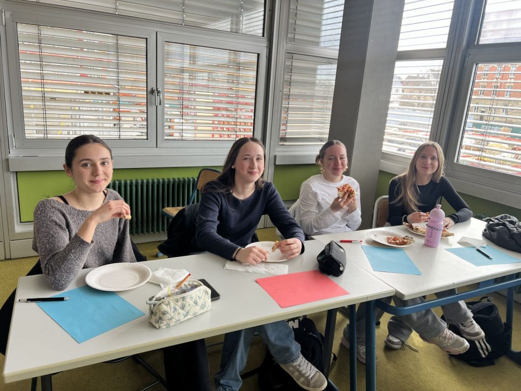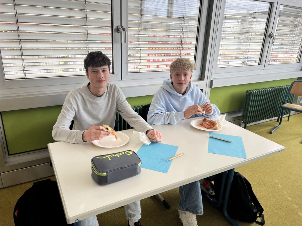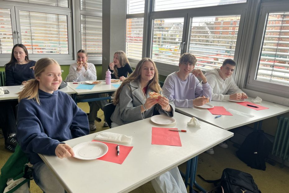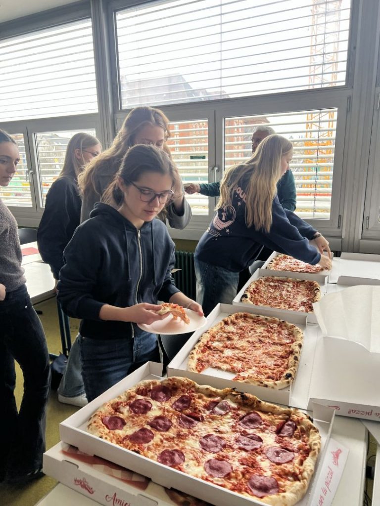 Heute haben wir, die teilnehmenden Schüler und Schülerinnen der Klassen 10, uns bei einem gemeinsamen Pizzaessen auf unseren bevorstehenden Austausch mit unserer Partnerstadt Bergamo im April vorbereitet. Bei italienischer Musik konnten wir uns schon ein wenig in die Atmosphäre Italiens einfühlen und noch offene Fragen, beispielsweise zu Gastgeschenken und dem Reiseablauf sowie den geltenden Regeln vor Ort, mit unseren begleitenden Lehrkräften klären. Unsere Vorfreude auf die gemeinsame Zeit in Bergamo ist dabei nochmals spürbar gestiegen. Wir sind gespannt und freuen uns schon sehr auf unsere italienischen Austauschschüler und Austauschschülerinnen in Bergamo!